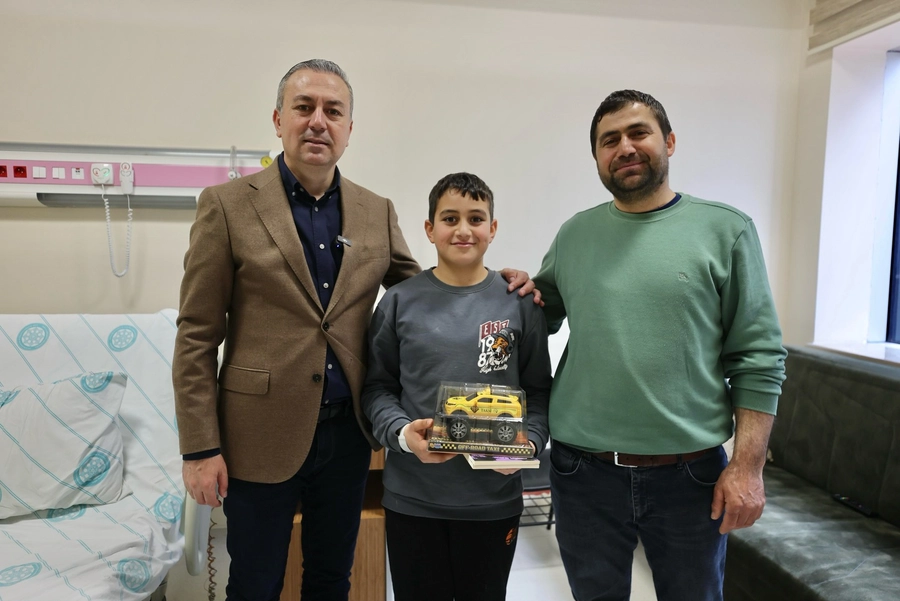 Başkan Uzun, bayramın üçüncü gününde hastanede tedavi gören çocukları ziyaret ederek hem moral verdi hem de bayram sevincini paylaştı.