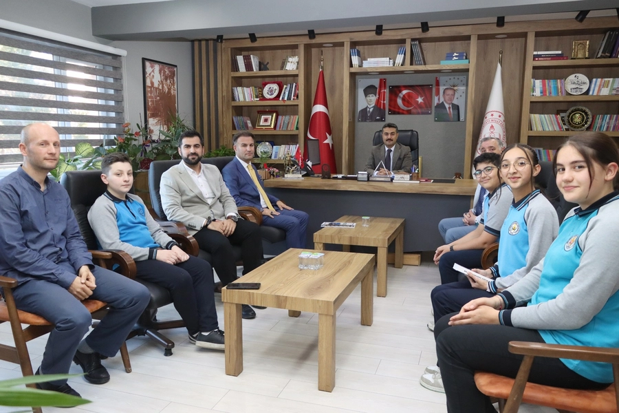 Mehmet Akif İnan Ortaokulu öğrencileri, hazırladıkları aylık dergi “MAİDER”i Millî Eğitim Müdürü Fatih Erdoğan’a hediye etmek üzere ziyaret gerçekleştirdi. Öğrencilere Okul Müdürü Mustafa Taş, Fen Bilimleri Öğretmeni Murat Kundakçı ve İngilizce Öğretmeni Emre Kaya da eşlik etti.