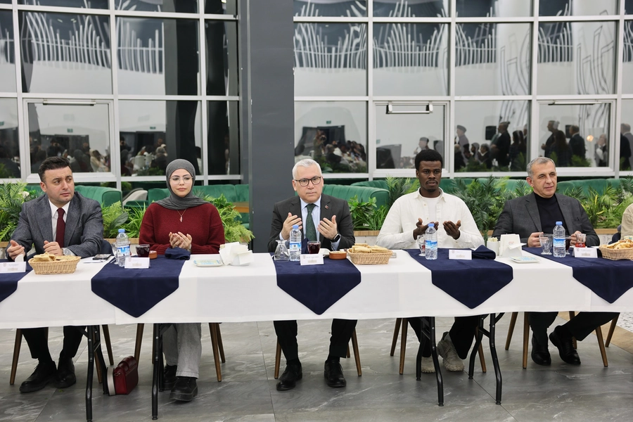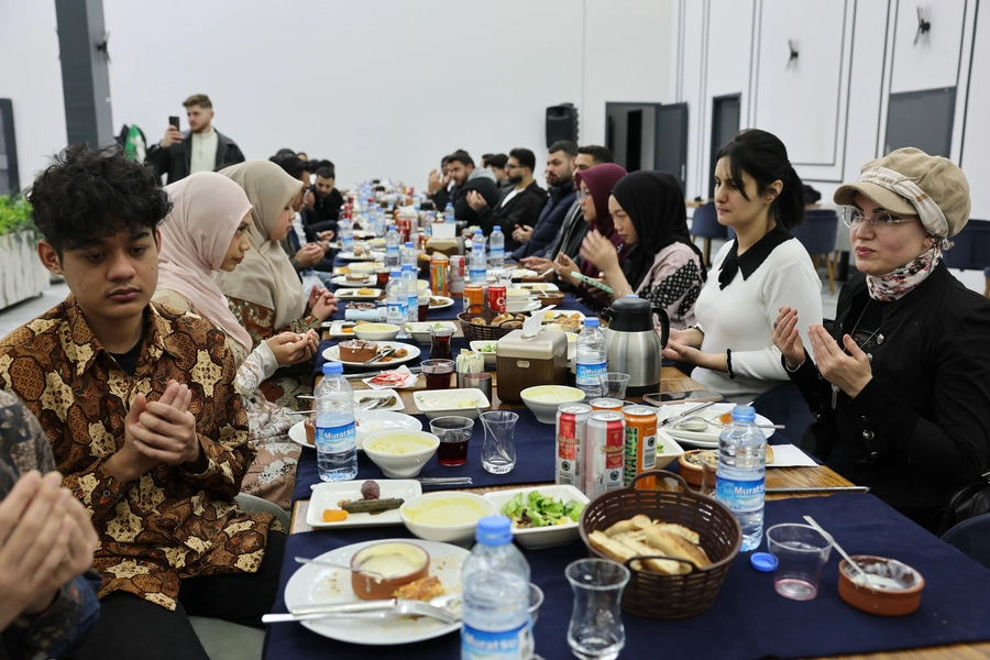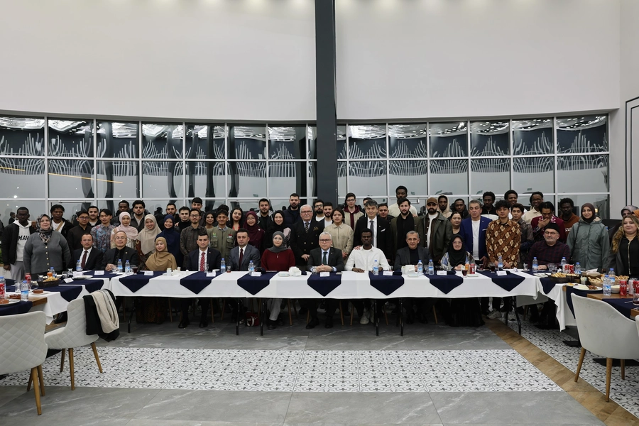 Farklı coğrafyalardan gelen uluslararası öğrencilerle birlikte iftarını yapan Şimşek, öğrencilerle tek tek ilgilendi.