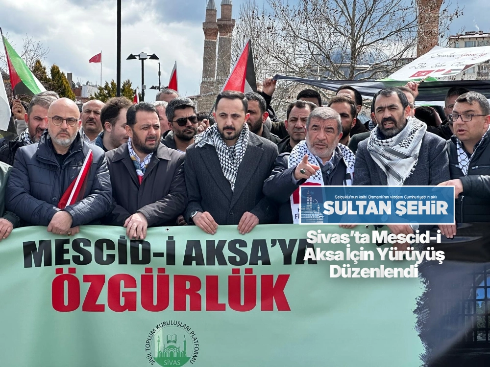 Sivas’ta “Mescid-i Aksa’ya özgürlük” çağrısıyla düzenlenen etkinlikte vatandaşlar bir araya geldi. Sivil Toplum Kuruluşları ve Filistin’e Destek Platformu tarafından organize edilen program kapsamında katılımcılar, İnönü Bulvarı Devlet Hastanesi önünde toplanarak Türk ve Filistin bayrakları eşliğinde Cumhuriyet Meydanı’na kadar yürüdü. Yürüyüş boyunca İsrail ve Amerika aleyhine sloganlar atıldı.