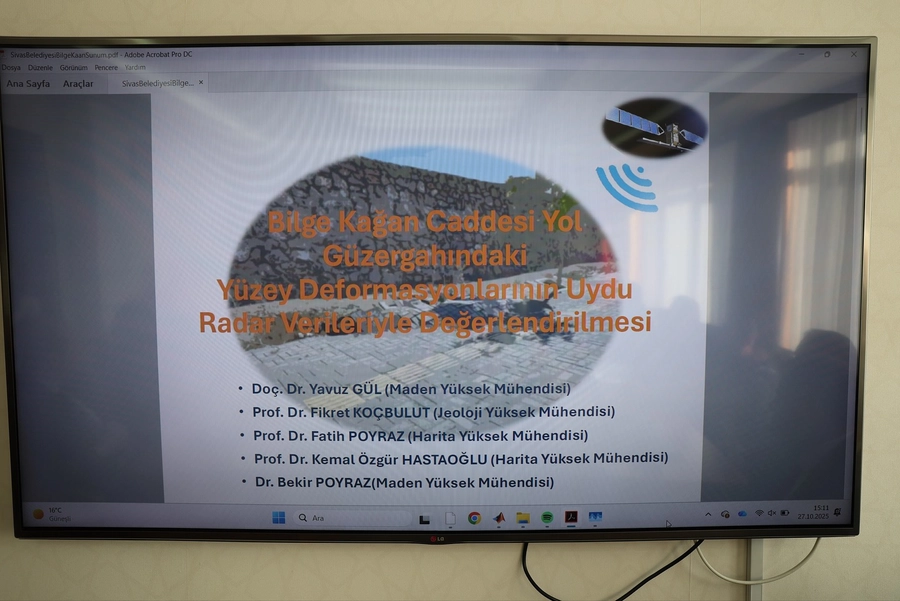 Toplantıda, Cumhuriyet Üniversitesi öğretim üyesi Doç. Dr. Yavuz Gül koordinasyonunda “Bilge Kağan Caddesi Yol Güzergâhındaki Yüzey Deformasyonlarının Uydu Radar Verileriyle Değerlendirilmesi” başlıklı bir sunum gerçekleştirildi.