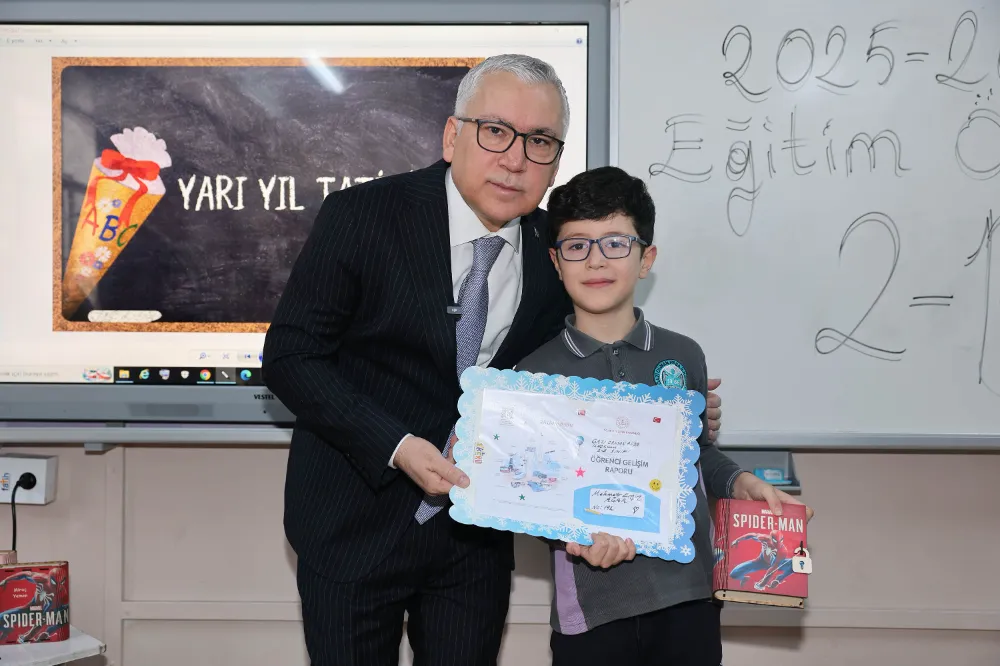 Sivas Valisi Yılmaz Şimşek, Gazi Osman Paşa İlkokulunu ziyaret ederek sınıfları gezdi ve öğrencilere karnelerini takdim etti. Çocuklarla yakından ilgilenen Vali Şimşek, yarıyıl tatilini verimli geçirmeleri yönünde öğrencilere tavsiyelerde bulundu.
